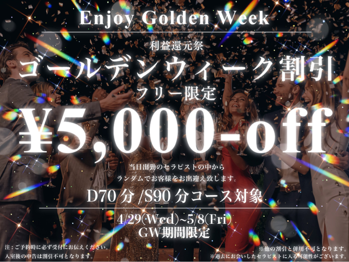 🎏今年もやります‼️🤪 去年大盛況だった GW🈹再び🎏🎏 “とろける🍜、クセになるGW” ❤️💛💚💙💜❤️💛💚💙💜 4/29(水)-5/8(金)の10日間限定 💎70分/S90分フリー限定 ⚠️🚨⚠️ -